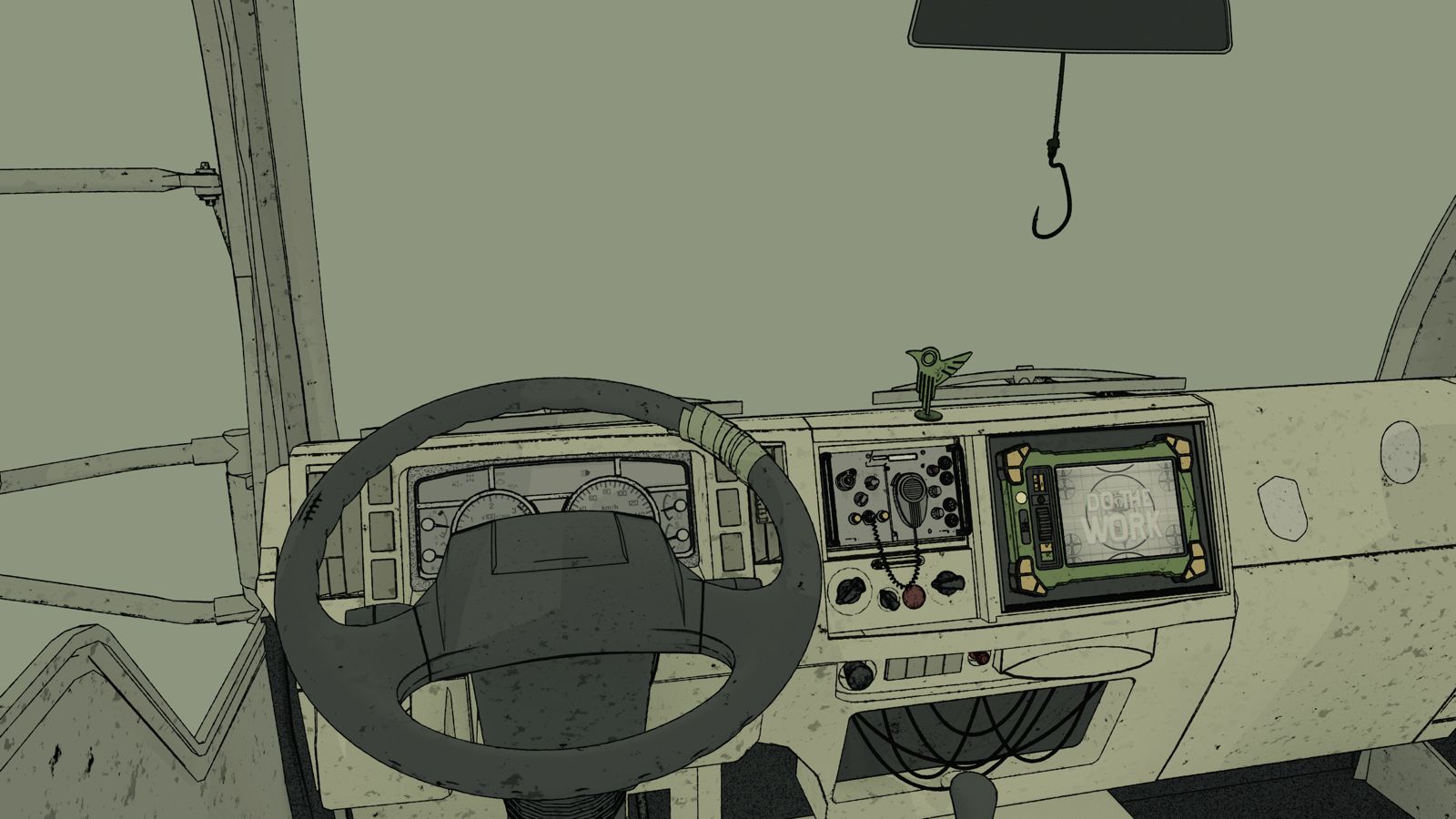 The player’s truck cabin needs to feel lived-in, oppressive, and believable. So, first step is digging our gloved Collector fingies into references. The Collector’s vehicle is based on refrigerated trucks, reimagined for New Horizon. We studied real-world interiors, like those shown in this reference video, and adapted their utilitarian design into something suited for carrying bodies, not food.